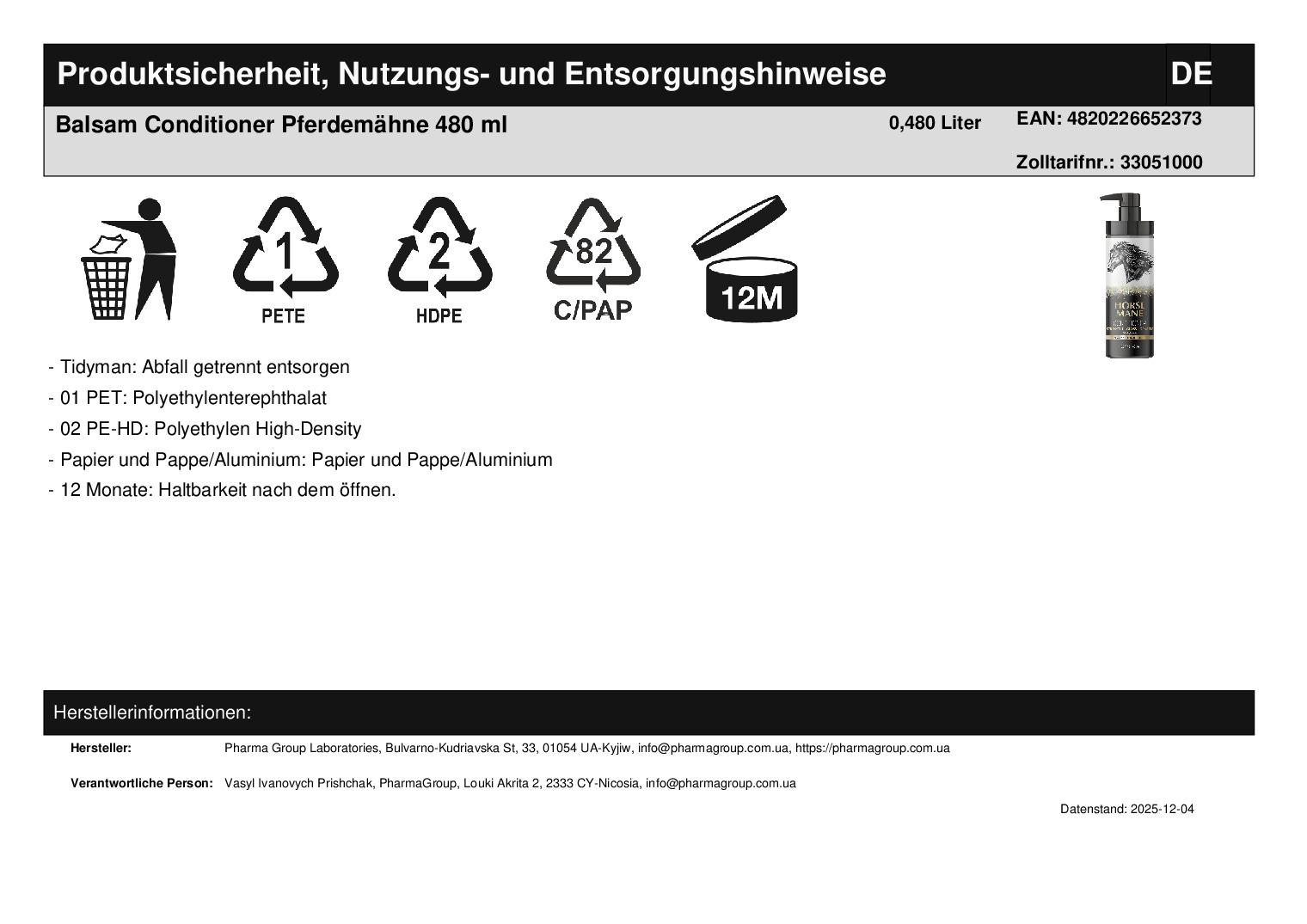 Für optimale Ergebnisse in Kombination mit HORSE MANE Shampoo verwenden.