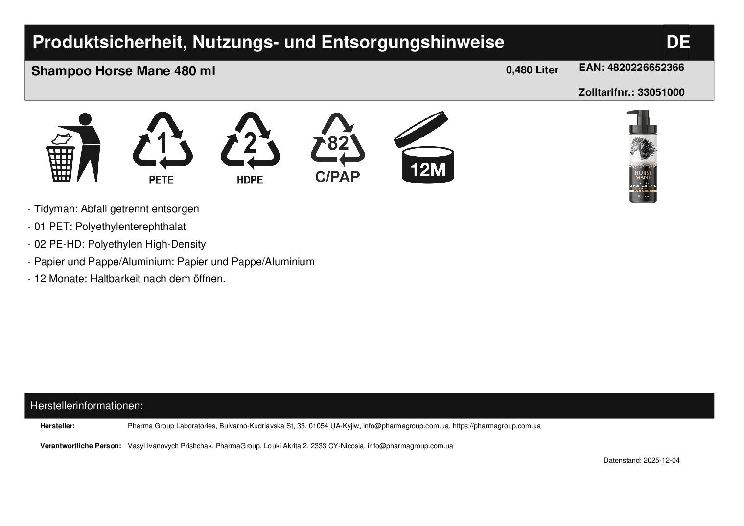 Schreibe die erste Bewertung für „Shampoo Horse Mane Haarshampoo Keratin Lanolin Collagen Klettenwurzelöl 480 ml“