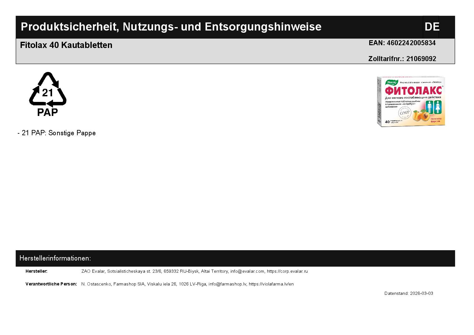 Das pflanzliche Abführmittel Fitolax, entwickelt von der Firma Evalar, ist ein mild wirkendes Mittel aus natürlichen Bestandteilen, das dabei hilft, die Evakuationsfunktion des Darms zu normalisieren und die Verdauung zu verbessern.