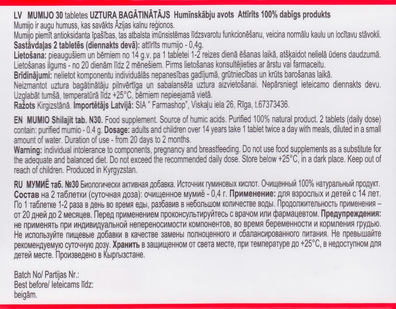 Mumijo Kirgistan 3 x 30 Tabletten je 200 mg
