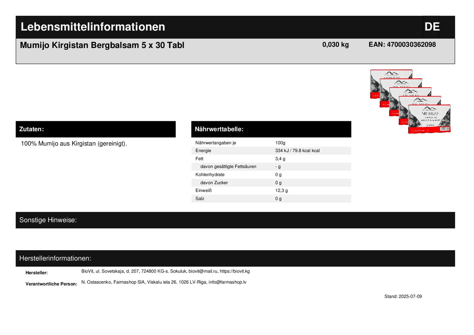 Mumijo Kirgistan Bergbalsam 5 x 30 Tabl