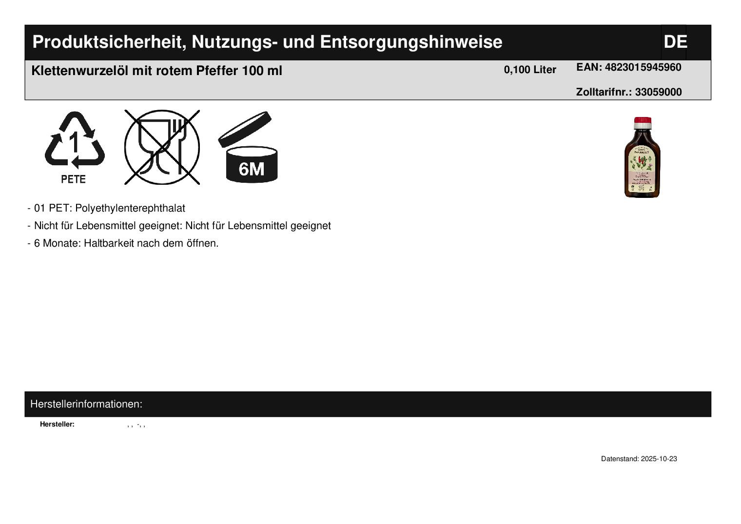 Klettenwurzelöl mit rotem Pfeffer Haaröl Haarwachstum 100 ml