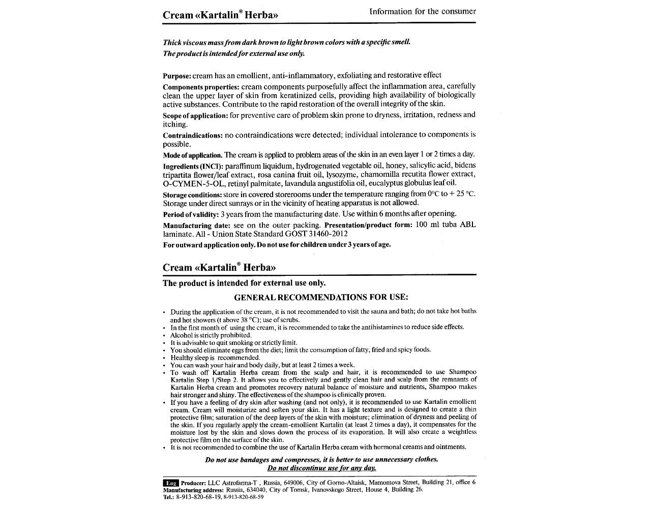 Die gleichzeitige Anwendung von Kartalin®-Herba mit kortisonhaltigen Cremes oder Salben wird nicht empfohlen.
