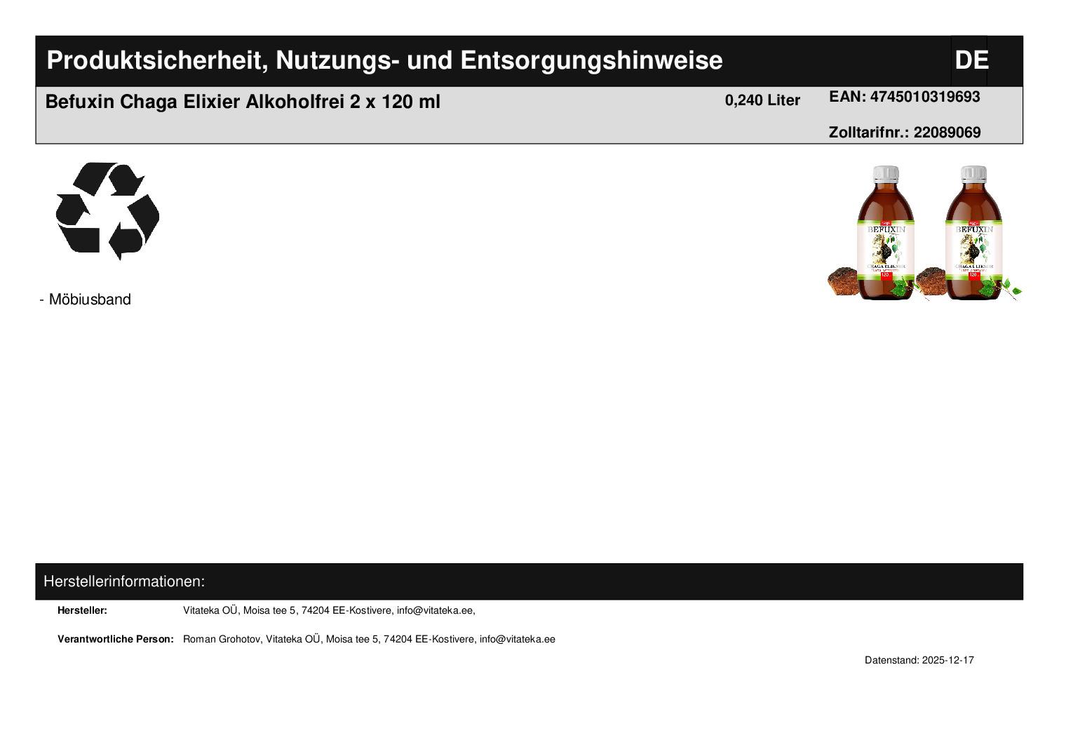 Schreibe die erste Bewertung für „Befuxin Chaga Elixier Alkoholfrei Tinktur 2 x 120 ml“
