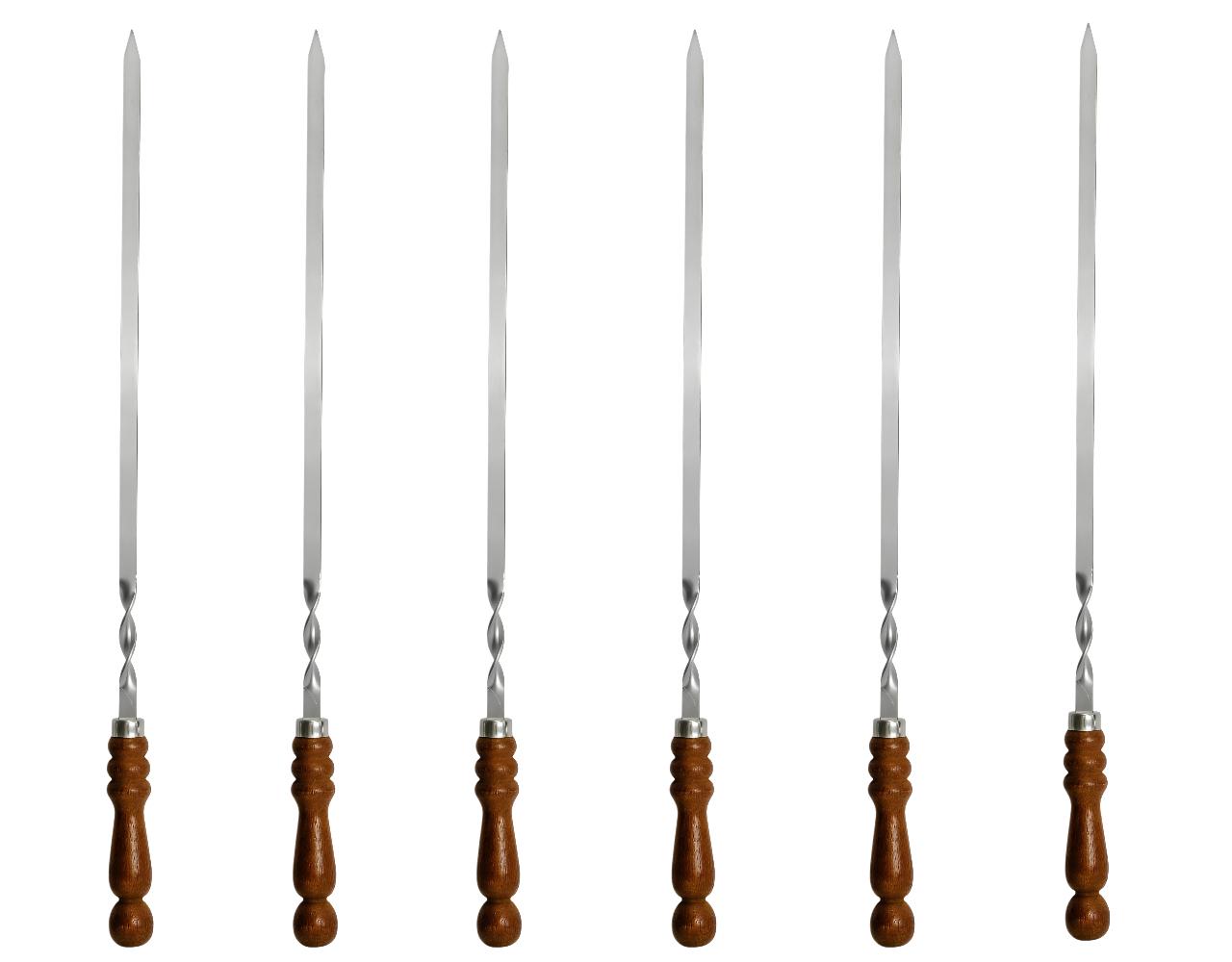 6 x Grillspießen aus Edelstahl mit Holzgriff, 3 mm stark und 12 mm breit