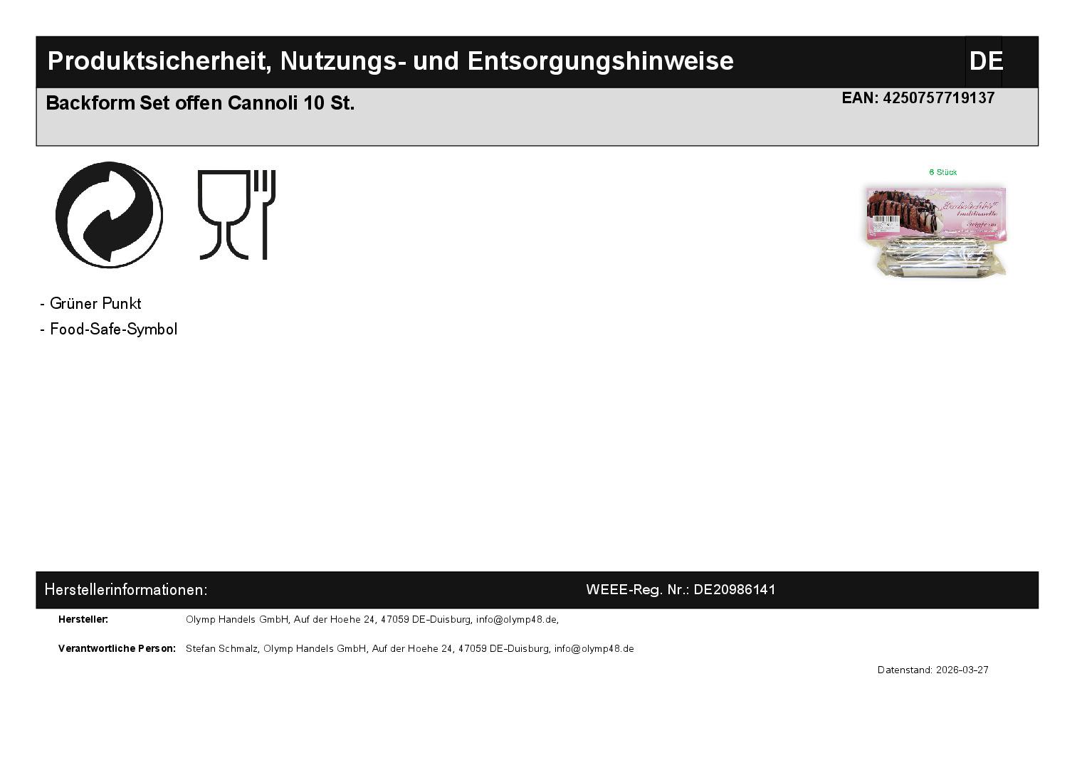 Backform Set offen Cannoli Form Schillerlocken Backröhrchen 10 St.