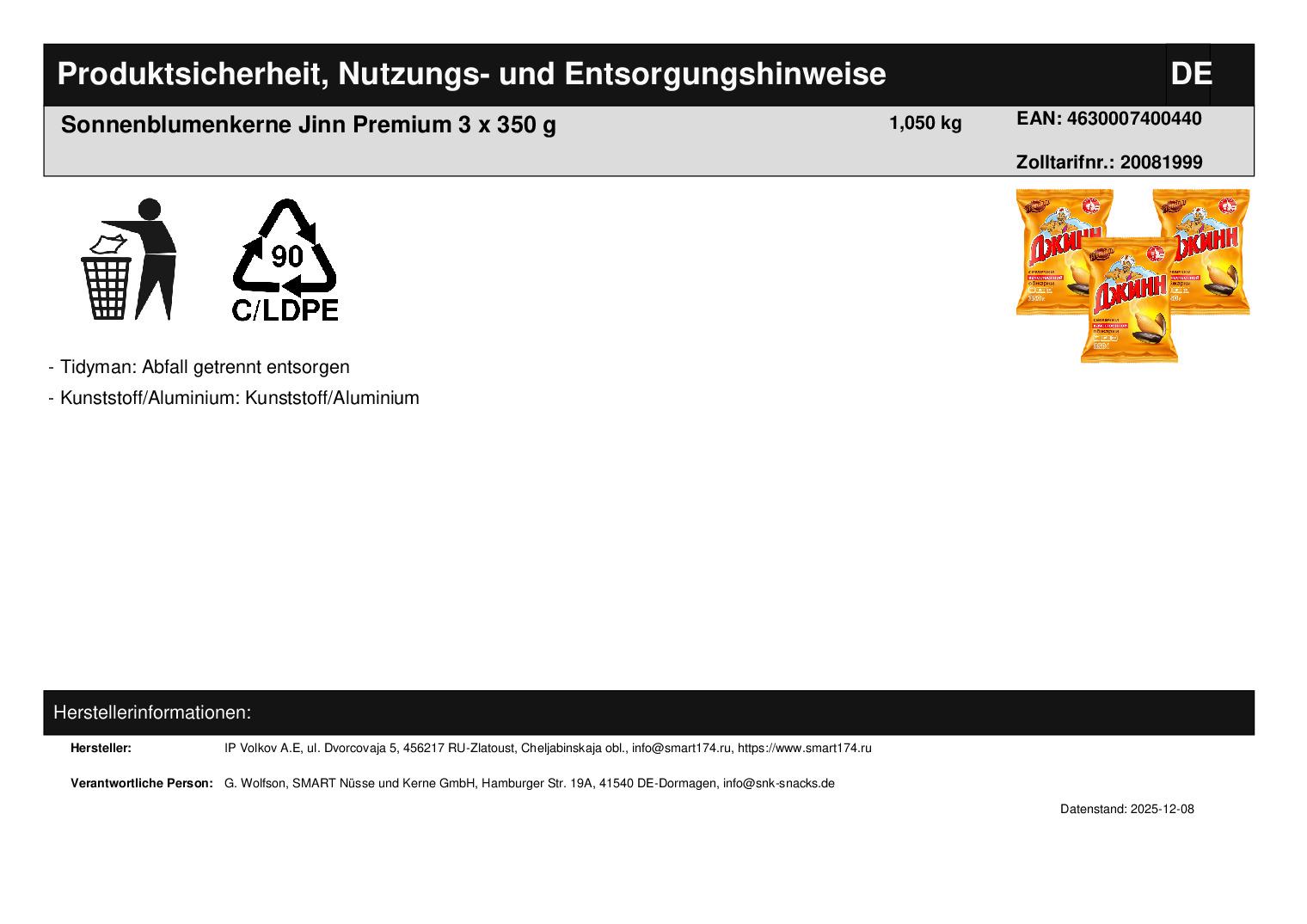 Sonnenblumenkerne Jinn Premium, geröstet 3 x 350 g – ausgewählte, kalibrierte Elite-Sonnenblumenkerne aus hochwertiger Süßwarensorte. Knusprig geröstet, reich an Aminosäuren, Vitaminen B, C, D, E und Karotin. Besonders aromatisch und geschmacklich intensiv.