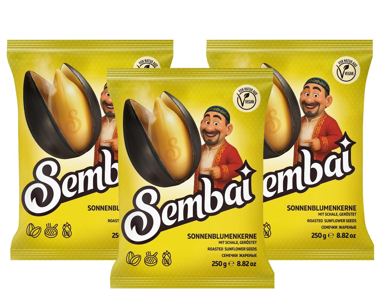 Sonnenblumenkerne Sembai schwarz, geröstet 3 x 250 g